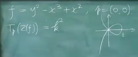- singular pt $\leadsto$ $T_p C \cong k^2$: the whole plane, $\pdv{f}{x} = \pdv{f}{y} = 0$.
